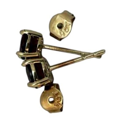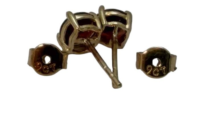 Pair Of 9ct Yellow Gold Stud Earrings With A Lighter Red Stone In Each
