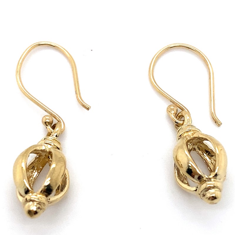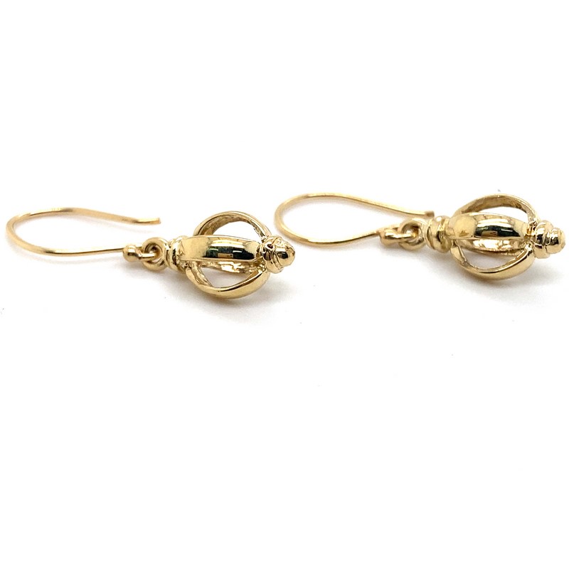 9CT YELLOW GOLD BALL CAGE DROP EARRING