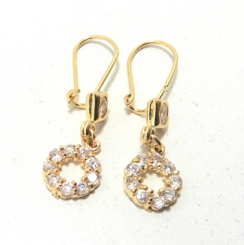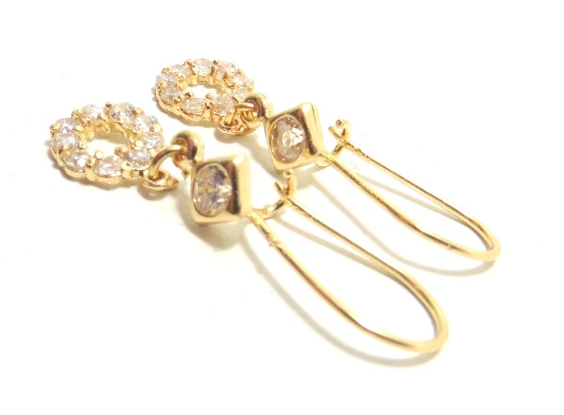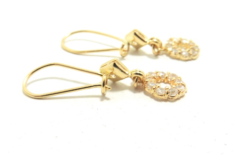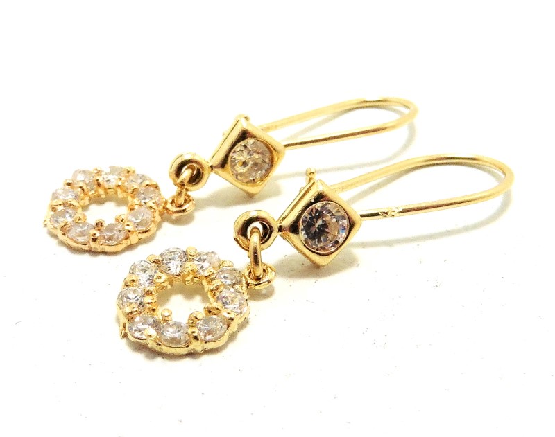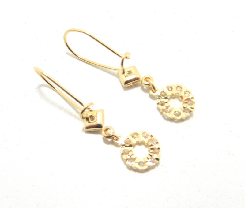 Elegant 18K yellow gold drop earrings. Crafted from lustrous yellow gold, these versatile earrings feature a drop/dangling shape adorned with 20 clear stones. The 18K engraving detail adds a refined touch. Weighing 1.58 grams, these earrings are the perfect blend of timeless style and modern flair. All sizes and measurements are approximate.