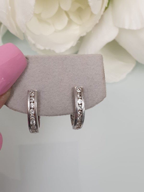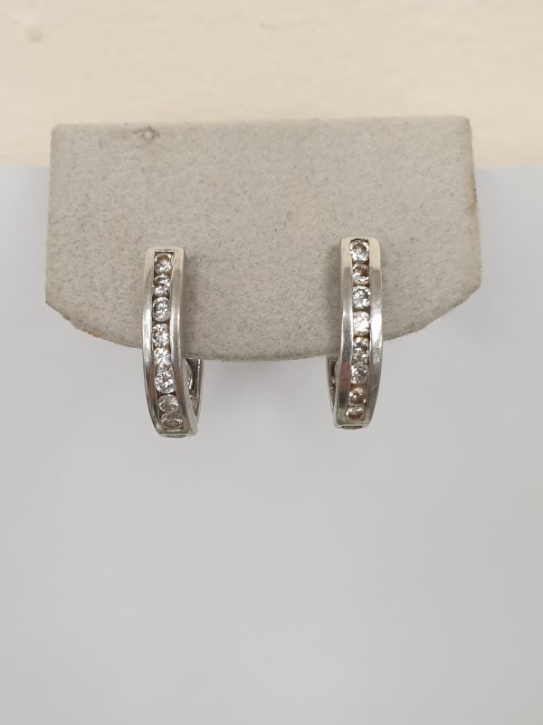 Make / Model: 9K White Gold Huggy Earrings Cz Stones
