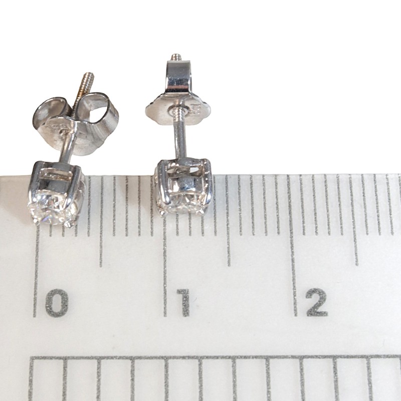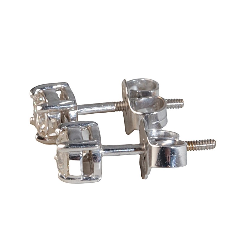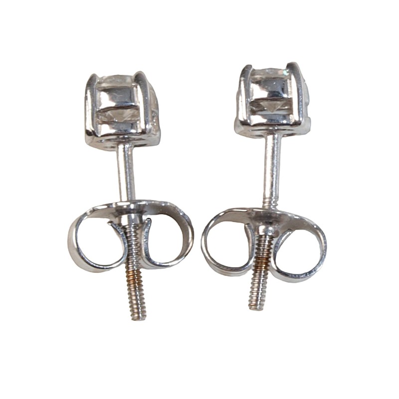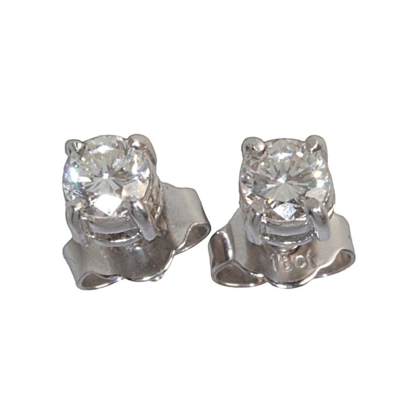 18ct white gold diamond earrings. These classic pierced earrings feature glistening diamonds set in a sleek white gold design, perfect for everyday wear or special occasions. Weighing a total of 1.42g, these versatile earrings are a timeless addition to any jewellery collection. All sizes and measurements are approximate.