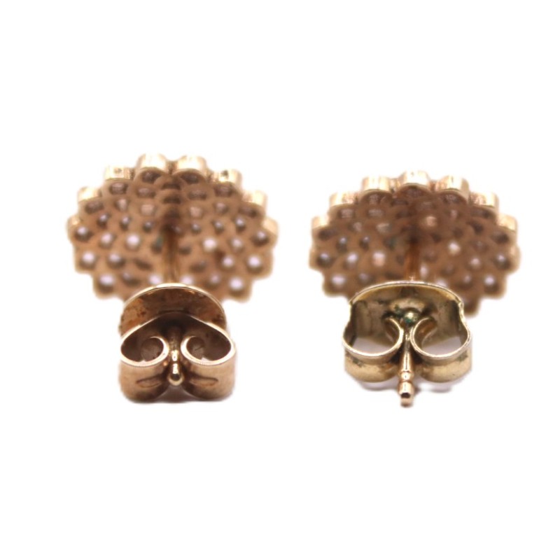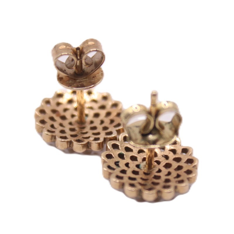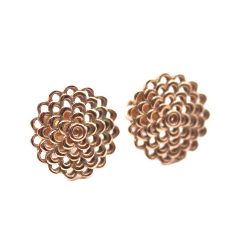 Round Ornate Flower Style Gold Stud Earrings