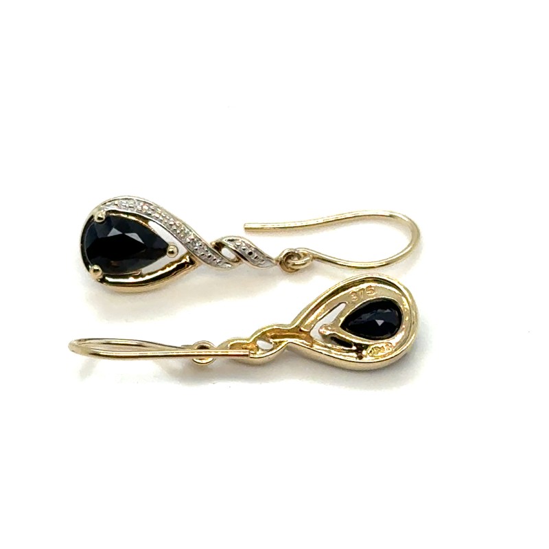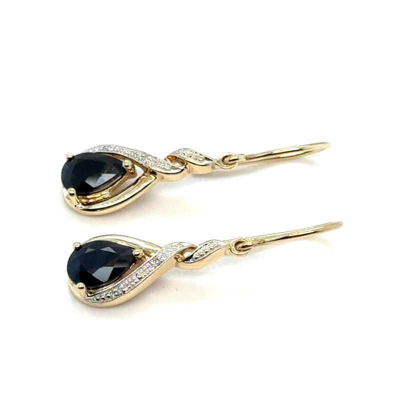 Yellow Gold Sapphires and Diamonds set in the drop earrings