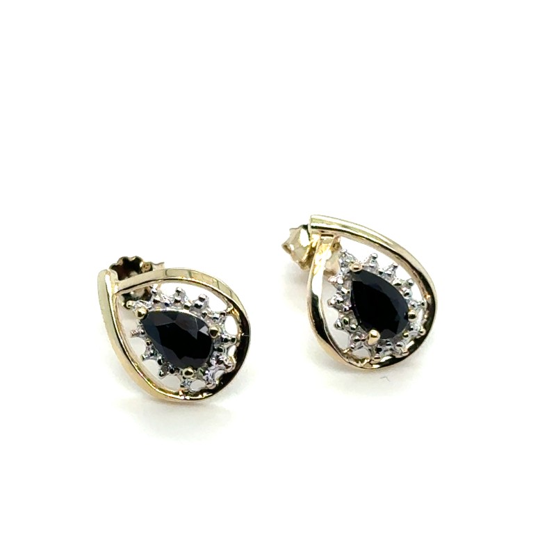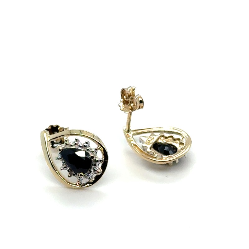 Yellow Gold Sapphires with illusion surrounds in the stud earrings