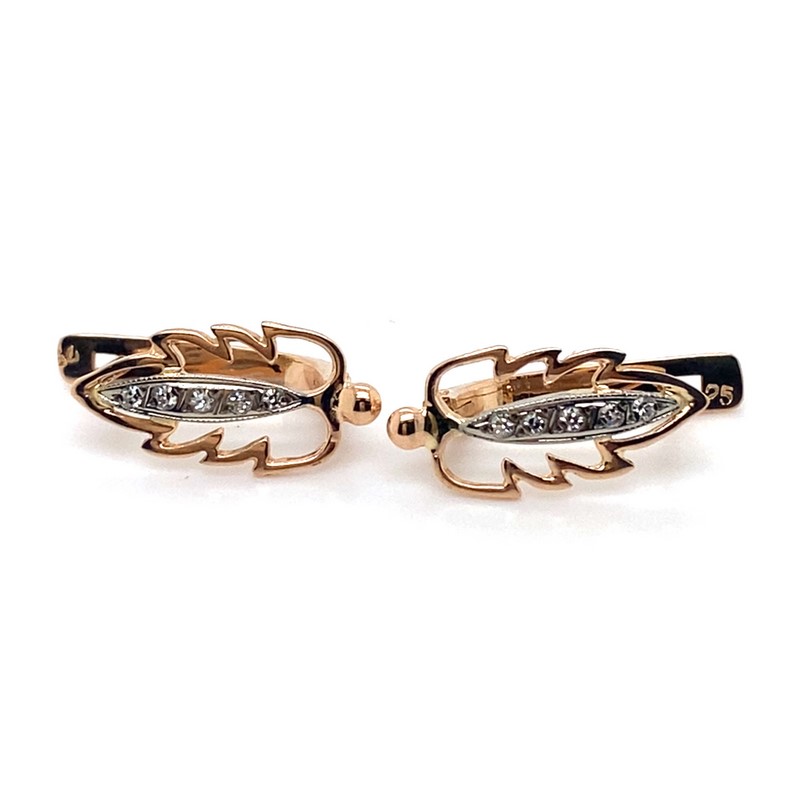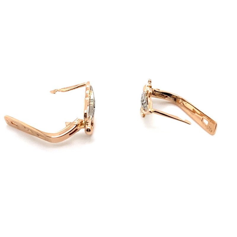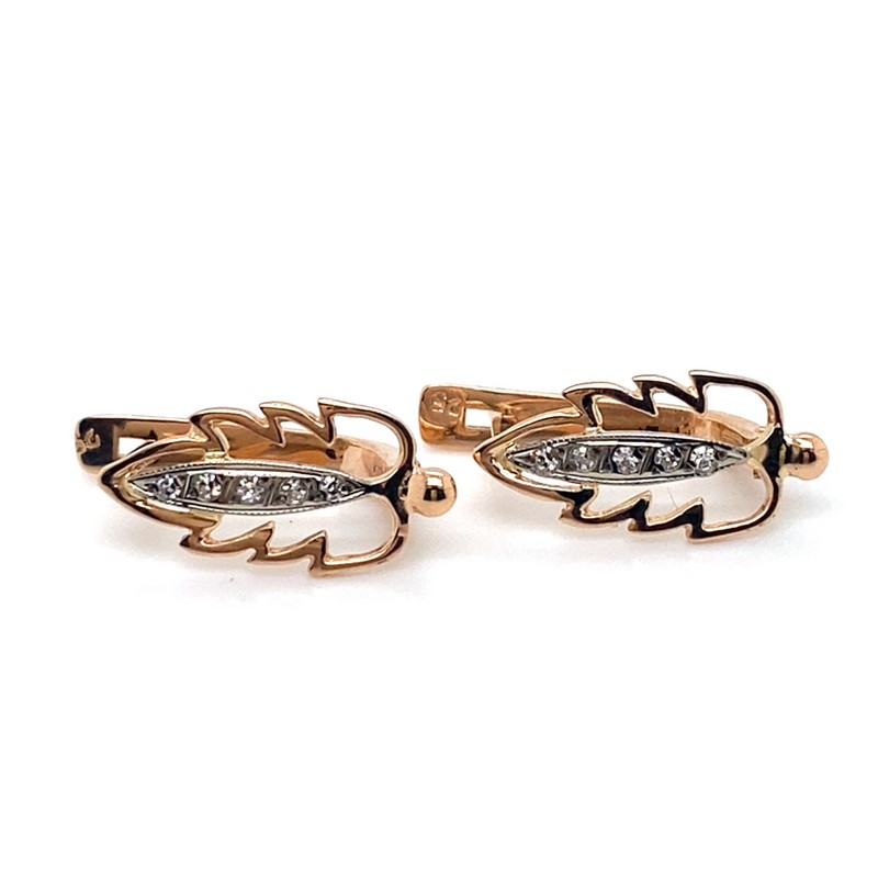 14CT ROSE GOLD DIAMONDS SET IN WHITE GOLD LEAF PATTERNED EARRINGS