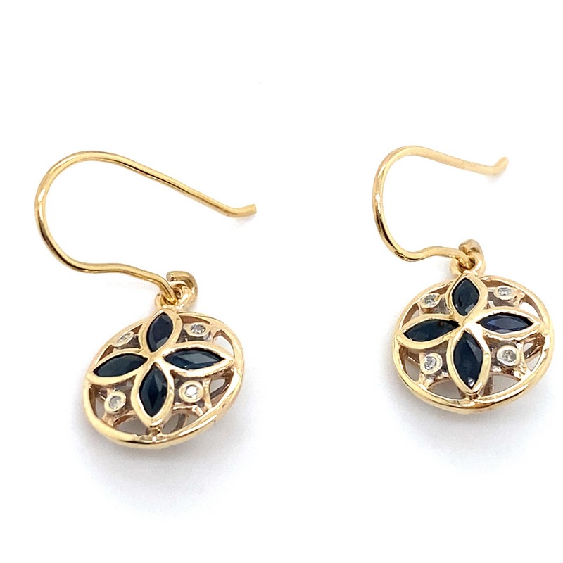 9CT YELLOW GOLD DIAMOND & SAPPHIRE DROP STYLE EARRINGS