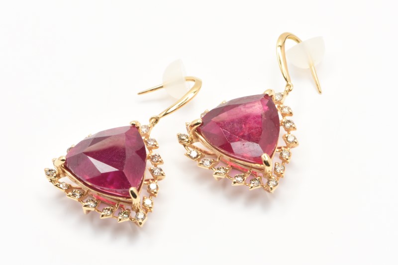 Val $2,300 - 18ct Glass Filled Ruby & Diamond Earrings