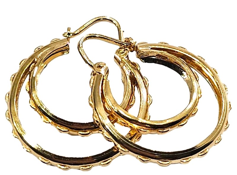 Effortlessly elegant, these 9-karat yellow gold earrings exude timeless charm. Designed with a classic pierced style, these earrings are a versatile choice for both everyday wear and special occasions. Weighing a delicate 1.78 grams, these earrings offer a refined and lightweight feel. Complement any ensemble with the warm, lustrous tones of this timeless pair of gold earrings. All sizes and measurements are approximate.