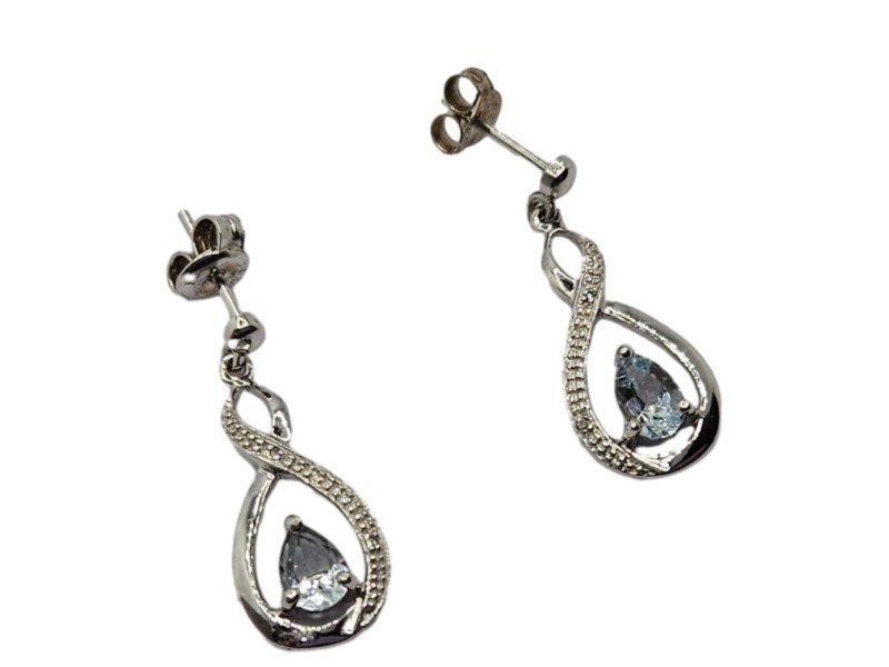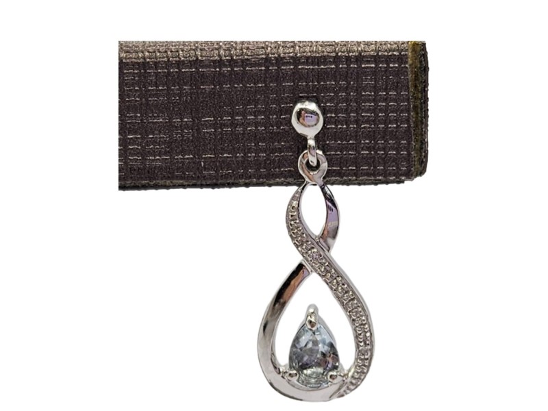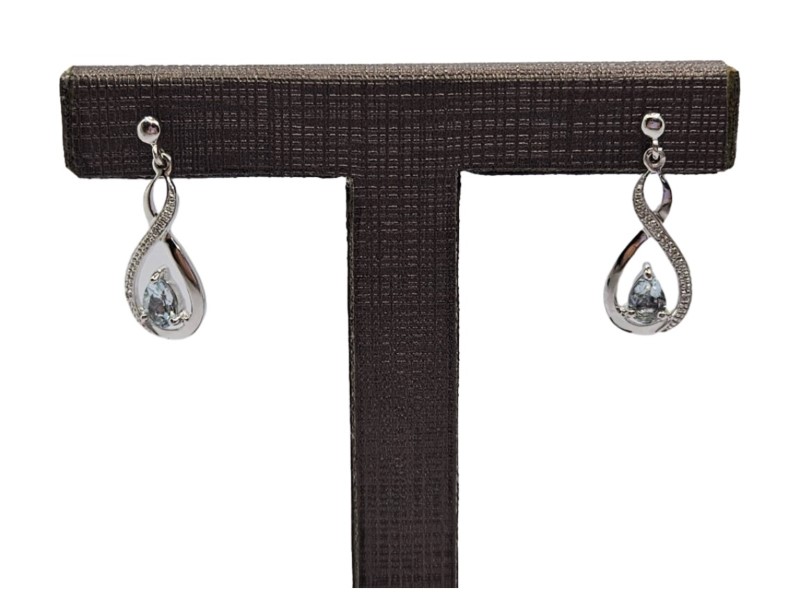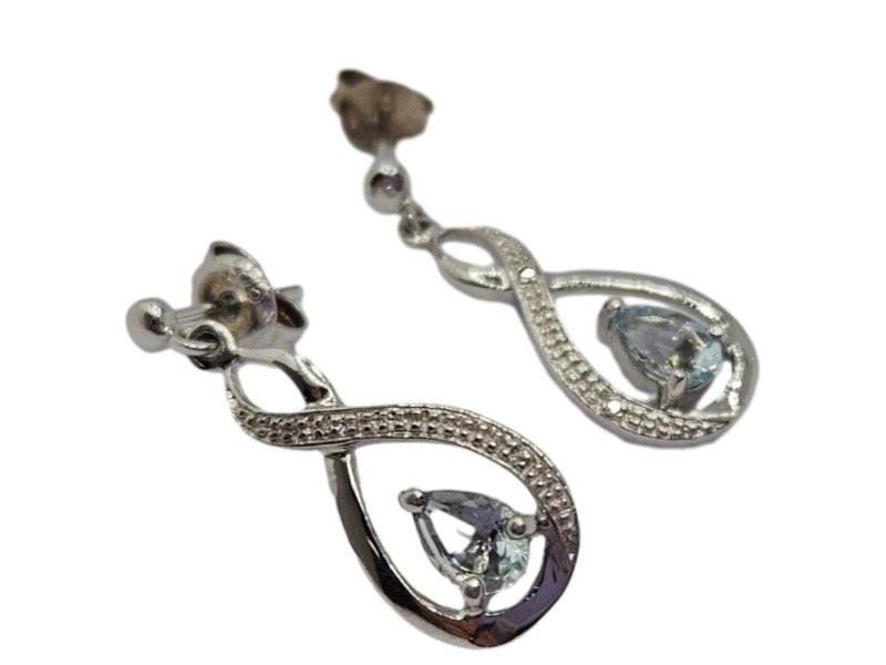 9kt White Gold Blue Stone Infinity Drop Pierced Earrings