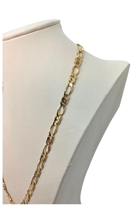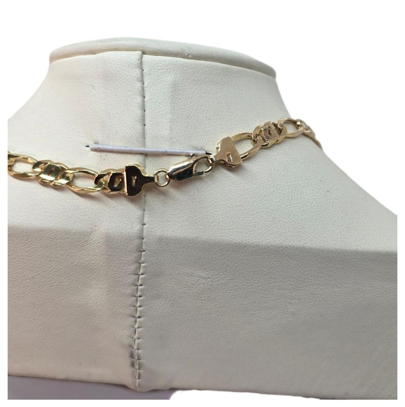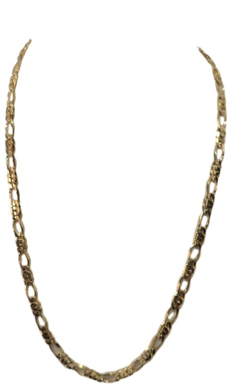 This striking 9 Karat yellow gold Figaro chain boasts a classic, elegant design. Crafted from premium yellow gold, the chain measures a generous 51.2 cm in length and weighs a substantial 23.32 grams, with a consistent 0.6 cm width. The Figaro sub-type features an interlinking pattern that adds depth and visual interest. This timeless chain is perfect for daily wear or as a stylish accent to any outfit. All sizes and measurements are approximate..