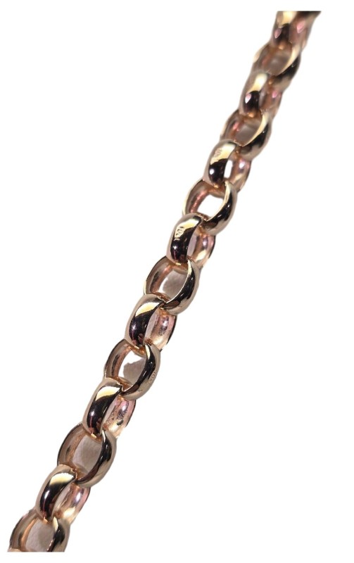 Crafted in 10 carat rose gold, this elegant Michael Hill chain necklace showcases a classic belcher link design. The smooth, uniform chain is secured with a bezel-set setting, housing a total diamond weight of 0.18 carats. This ladies' piece has a total weight of 43.42 grams, making it a refined and substantial addition to any jewellery collection.