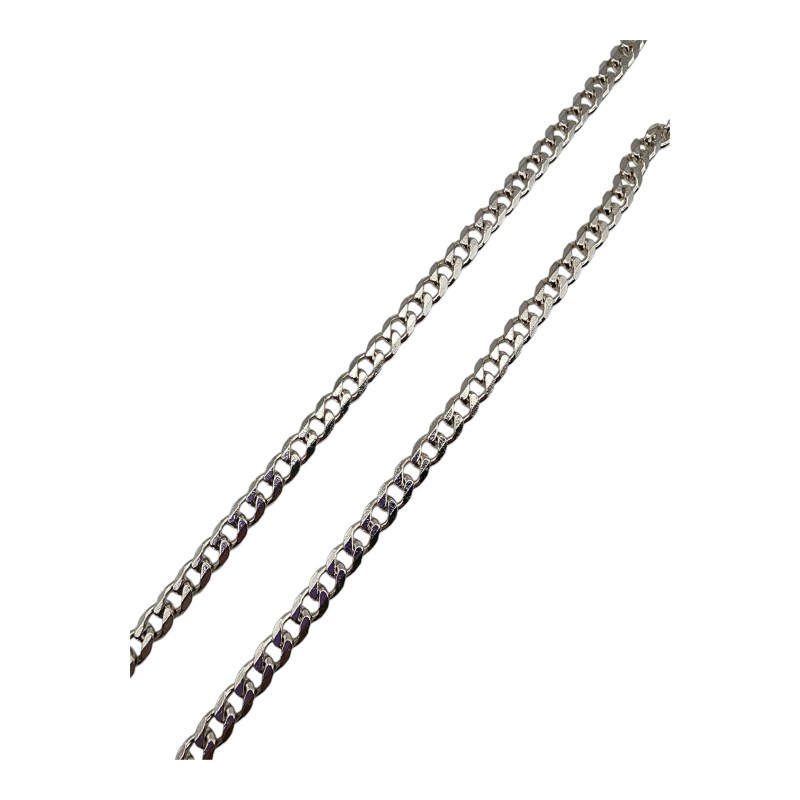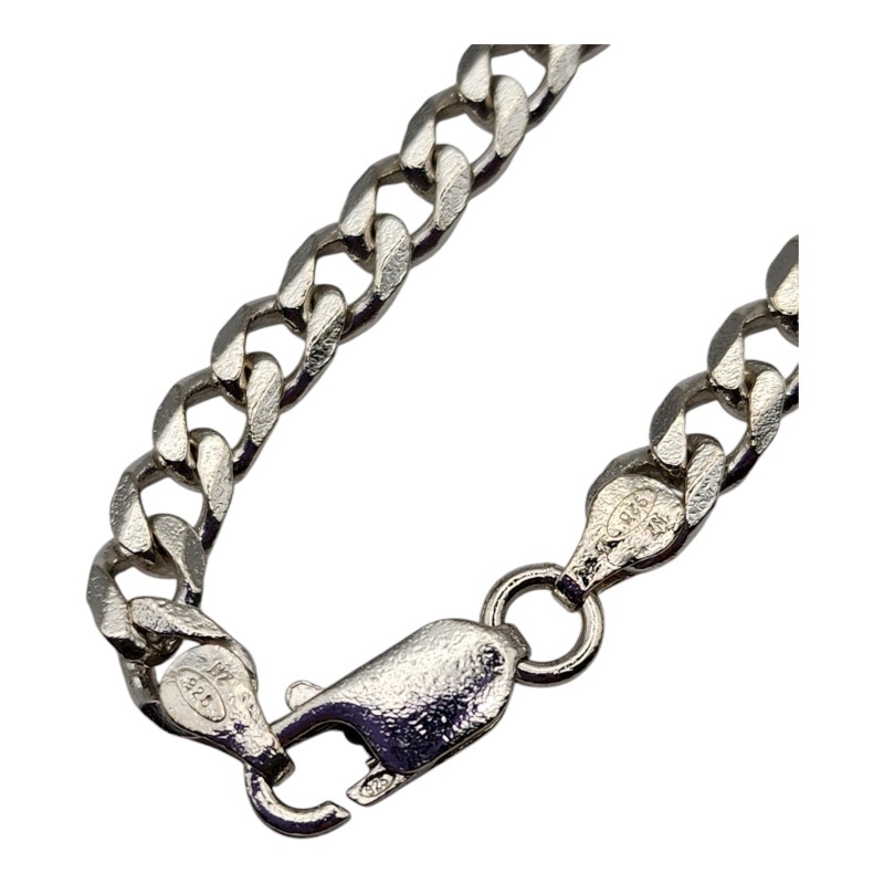 This 925 sterling silver curb chain is a classic unisex accessory. Weighing 37.33 grams, the chain features a hallmark of 925, denoting its high-quality silver composition. The simple, yet elegant curb design makes this chain a versatile choice to complement a range of outfits and styles. Whether worn alone or layered with other necklaces, this durable silver chain is a timeless piece that can be enjoyed for years to come. All sizes and measurements are approximate.