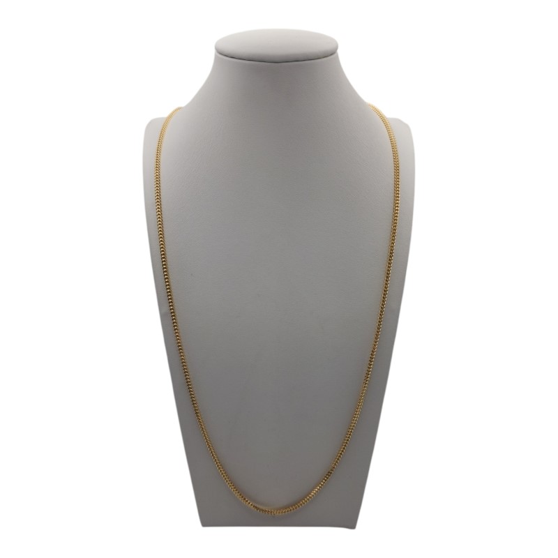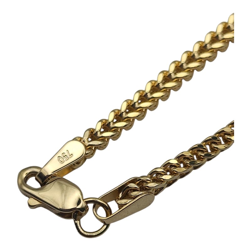 This exquisite 18 karat yellow gold chain boasts a Cubin shape, perfect for adding a touch of elegance to any look. Crafted with a hallmark of .750, this stunning piece weighs in at 7.48 grams, showcasing the quality and craftsmanship. With its unique engraving details, this ladies' chain is a versatile accessory that can be dressed up or down to suit any occasion. All sizes and measurements are approximate.