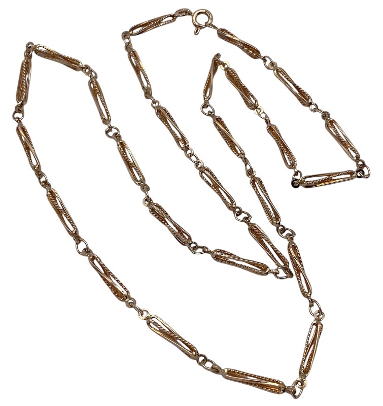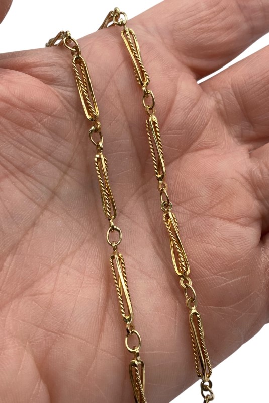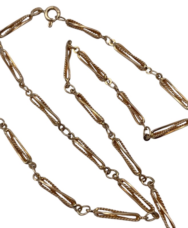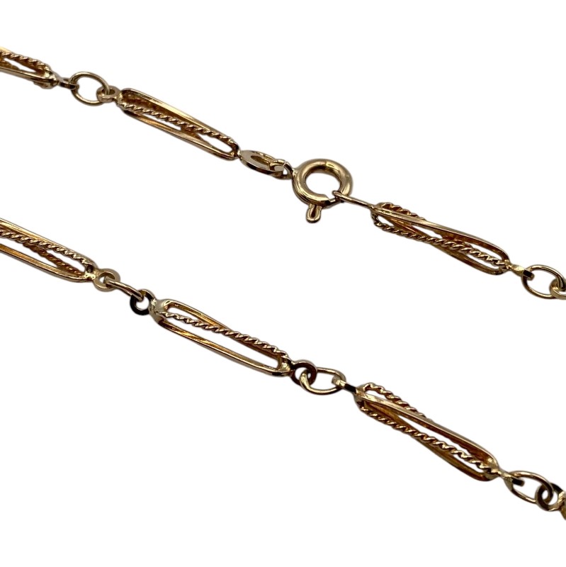 A fancy twist bark linked chain of 9ct yellow gold. Some light surface wear may be visible.