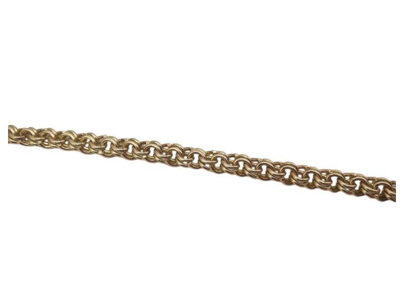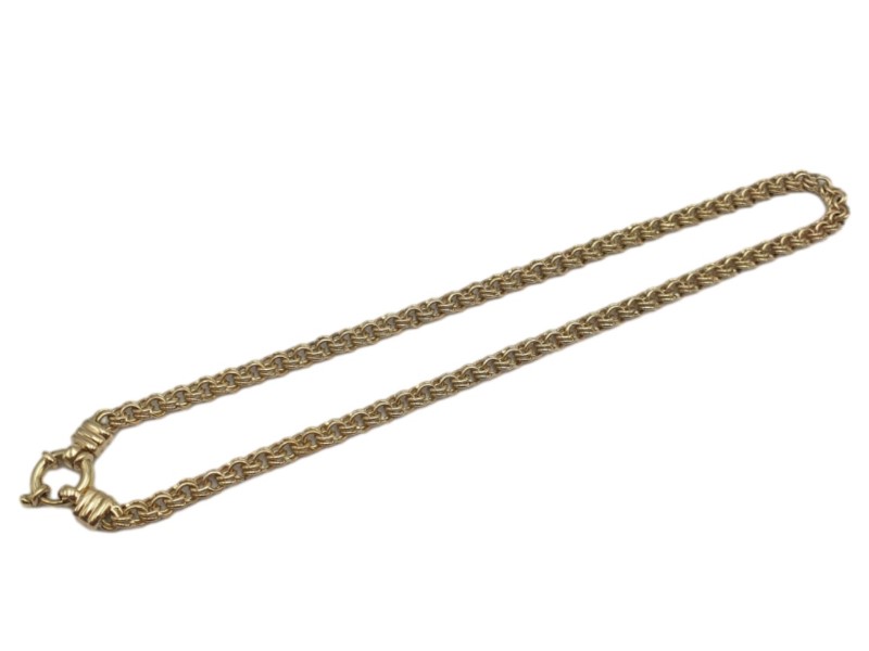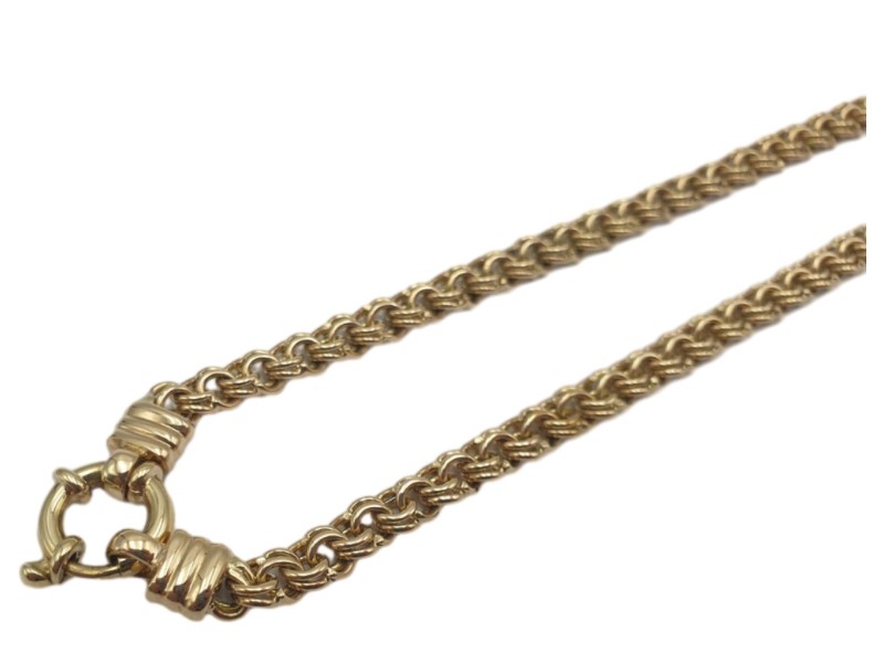 This 9 karat yellow gold curb chain features a hallmark of .375, indicating the purity of the metal. Measuring 45.4 cm in length and 0.6 cm in width, the chain weighs a substantial 33.33 grams, making it a durable and versatile accessory for any wearer. The engraving details of '375' add a touch of personalization to this unisex piece. All sizes and measurements are approximate.
