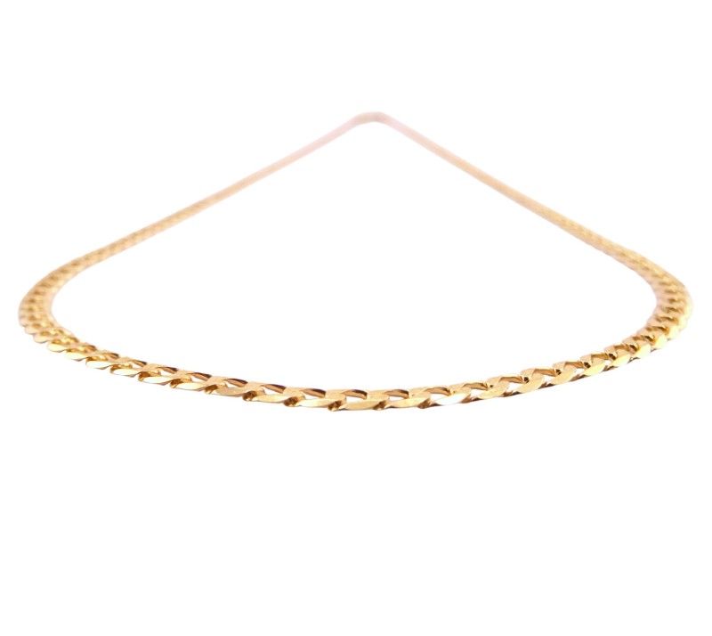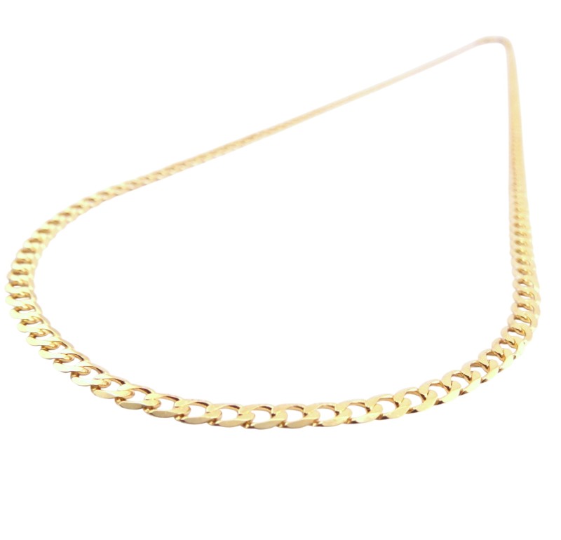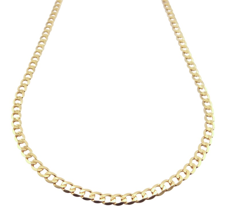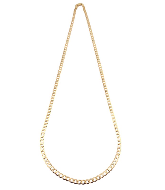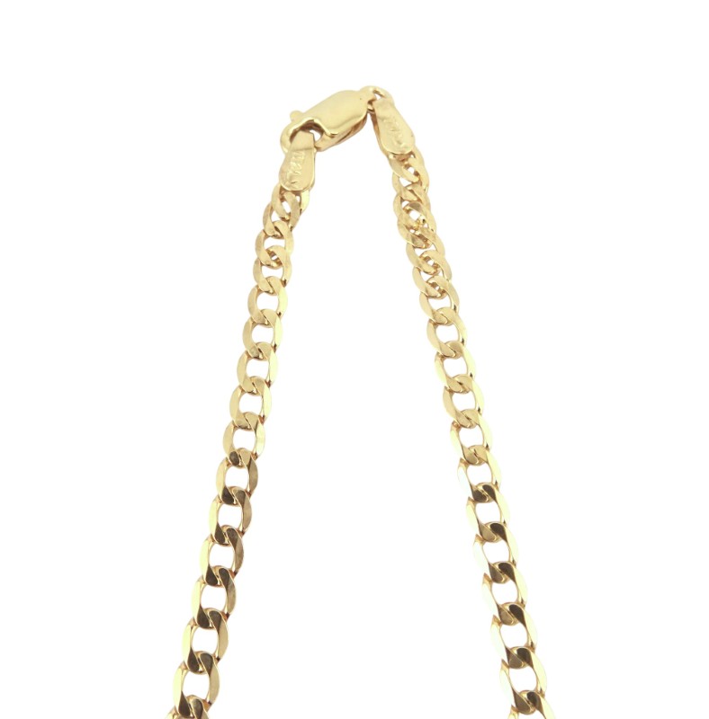 This 9 karat yellow gold curb-link chain is a timeless accessory suitable for any gender. Crafted from sturdy yellow gold, the chain measures 49.0 cm in length and 0.3 cm in width, weighing a substantial 5.73 grams. The simple, elegant design makes this chain a versatile piece that can be worn alone or layered with other necklaces.
