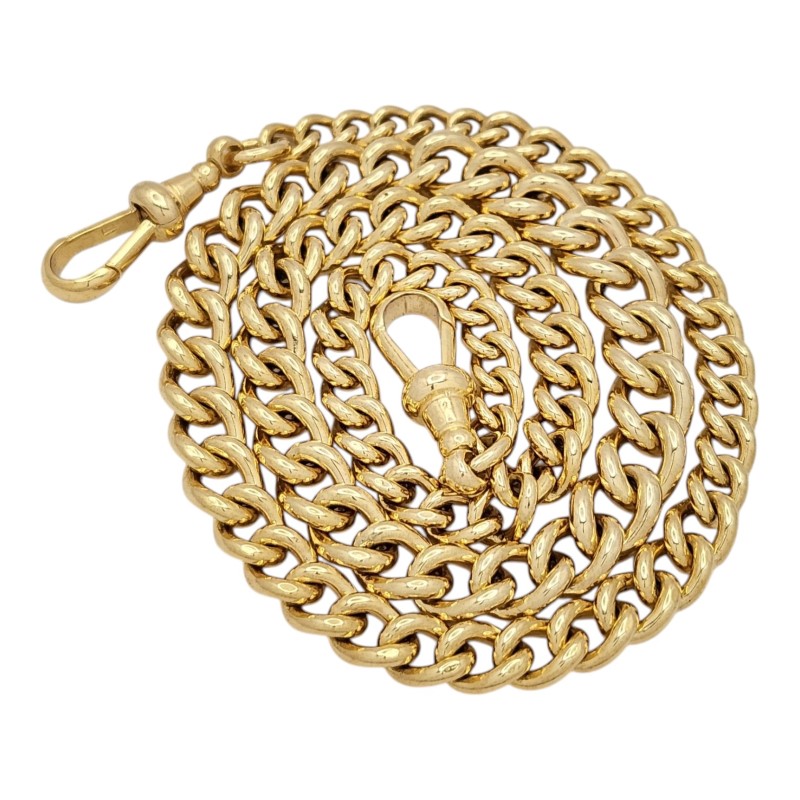 This 9 karat yellow gold chain is a classic accessory that adds a touch of elegance to any outfit. Measuring 45 cm in length and weighing 44.36 grams, this timeless piece is crafted from durable yellow gold, making it a versatile and long-lasting addition to your jewellery collection. Whether worn alone or layered with other necklaces, this chain is a reliable choice for both casual and formal occasions. All sizes and measurements are approximate.
