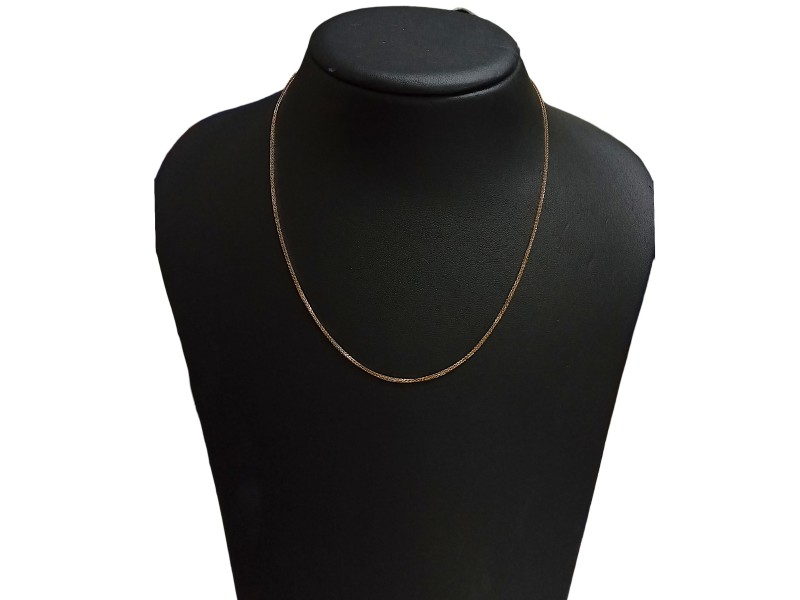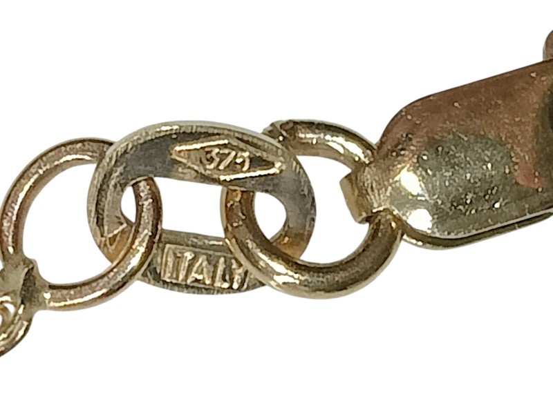 This 9 karat yellow gold chain, made in Italy, is a classic and versatile accessory. Measuring 45 cm in length and weighing 1.98 grams, this chain features a delicate 0.1 cm width, perfect for layering or wearing on its own. The hallmark of .375 ensures the quality and authenticity of the gold. An essential addition to any jewellery collection, this chain can be dressed up or down to complement a variety of styles. All sizes and measurements are approximate.