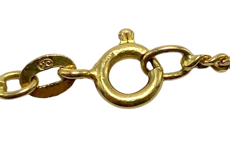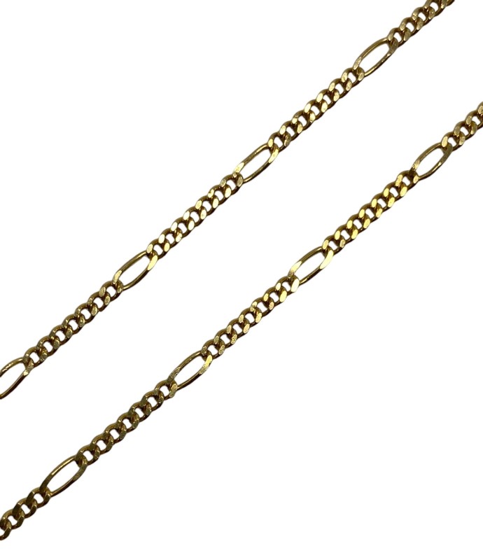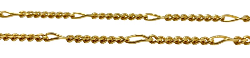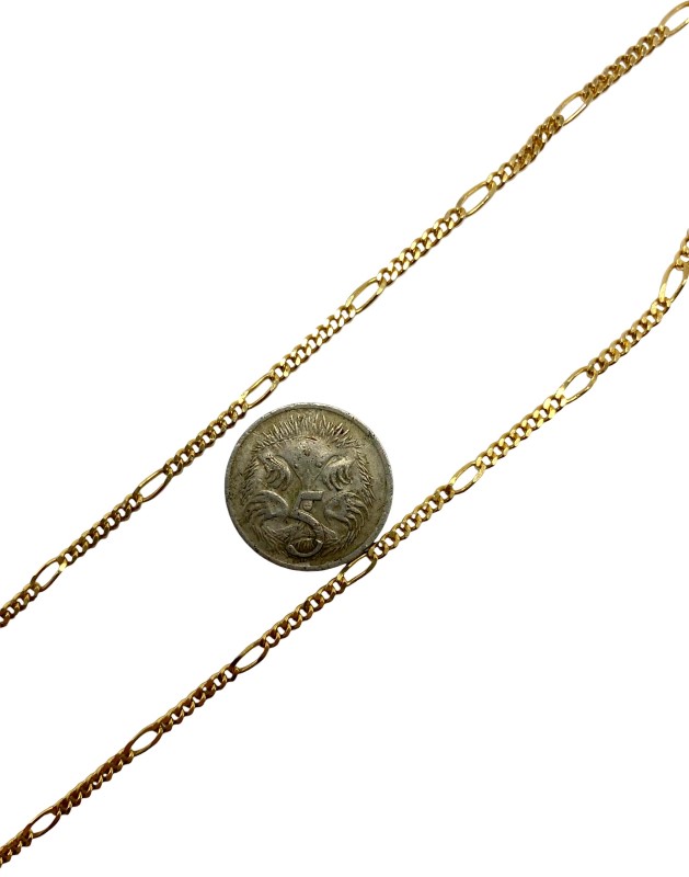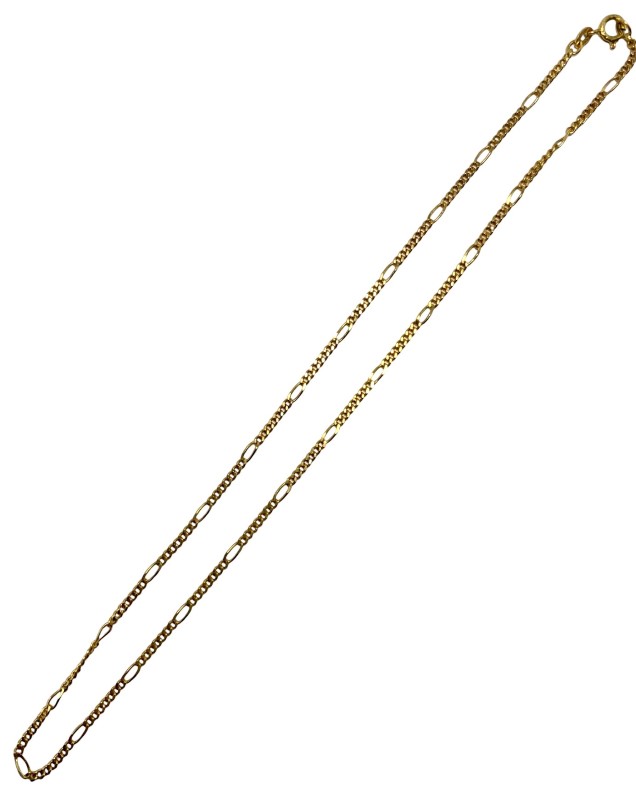 Crafted to a length of 40cm and width of 0.2cm, it features a repeating pattern of seven small circular links connected to one larger oval link.