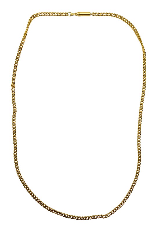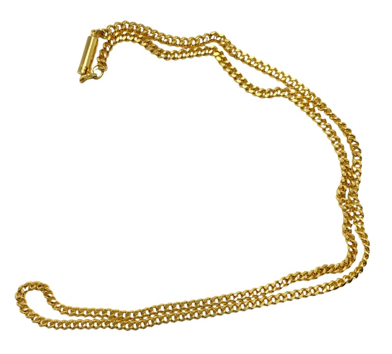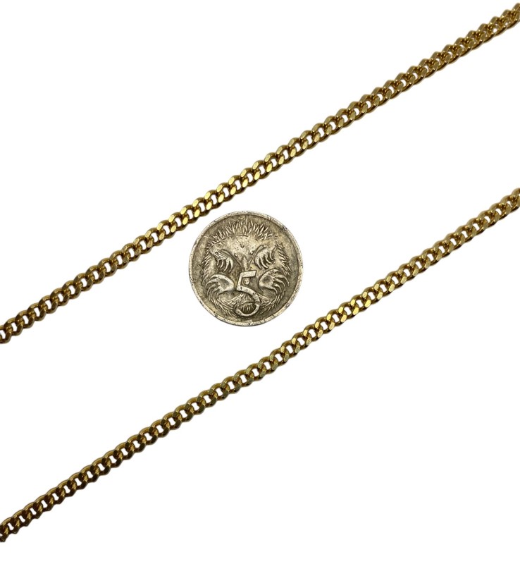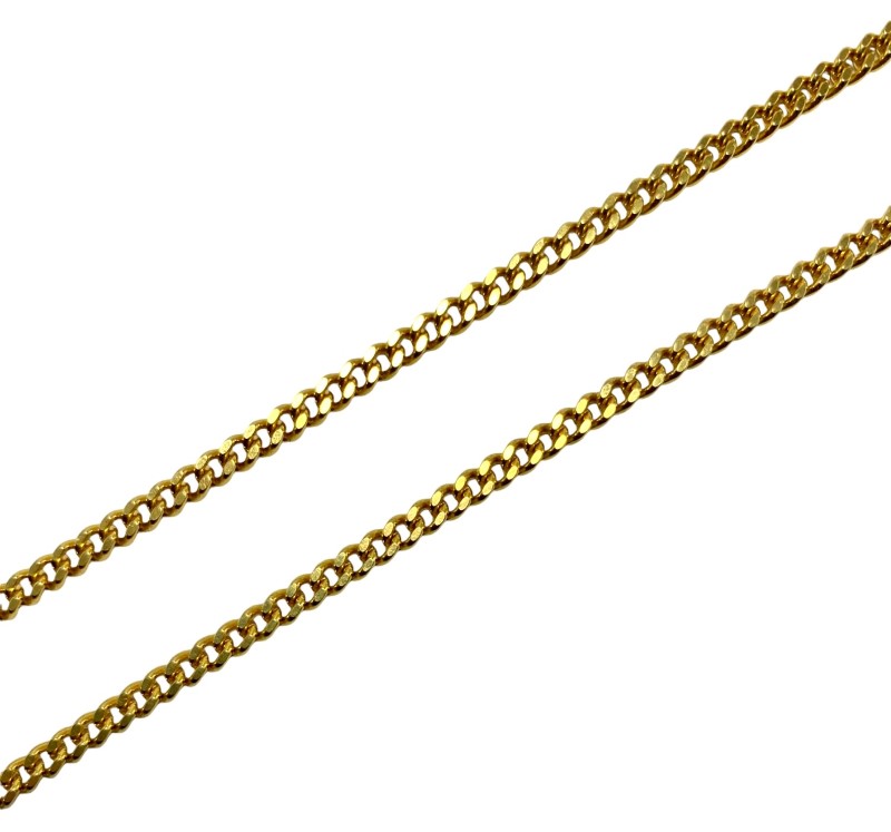 Chain is stamped 750 near the clasp, is 50cm long, 0.5cm wide, and weighs 19.81grams.