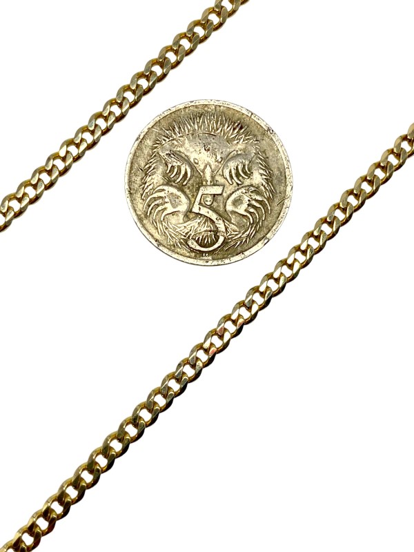 Italian-made 9ct yellow gold curb link chain crafted to a length of 55cm.