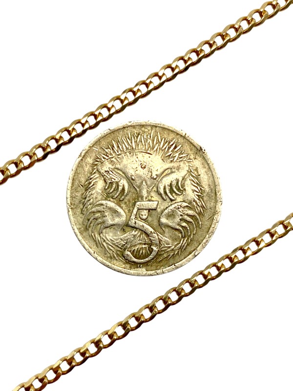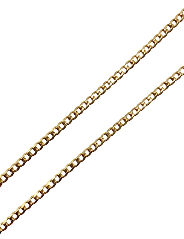 9ct yellow gold fine curb link chain crafted to a length of 48cm.