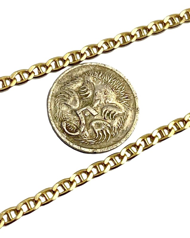 9ct yellow gold anchor link chain crafted to a length of 50cm.