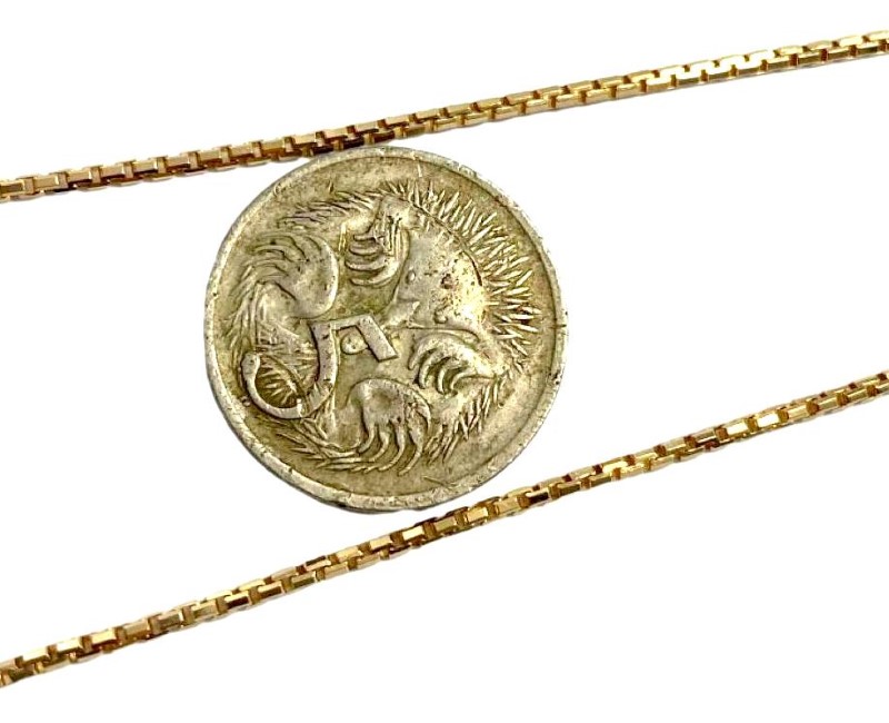 9ct yellow gold box link chain crafted to a length of 44cm.