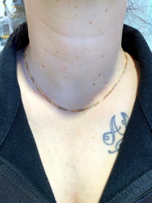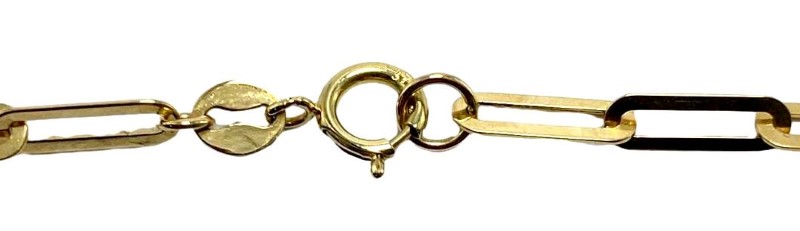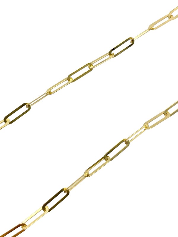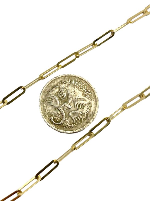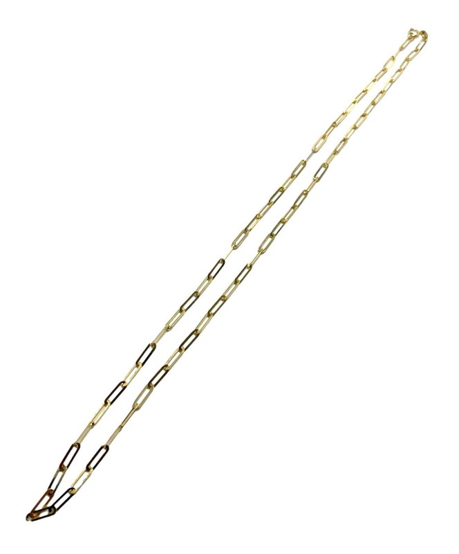 9ct yellow gold paperclip chain crafted to a length of 46cm.