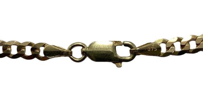 Chain is stamped 375, clasp is stamped 10K, whole piece weighs 6.95grams.