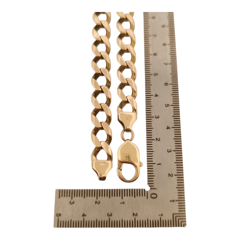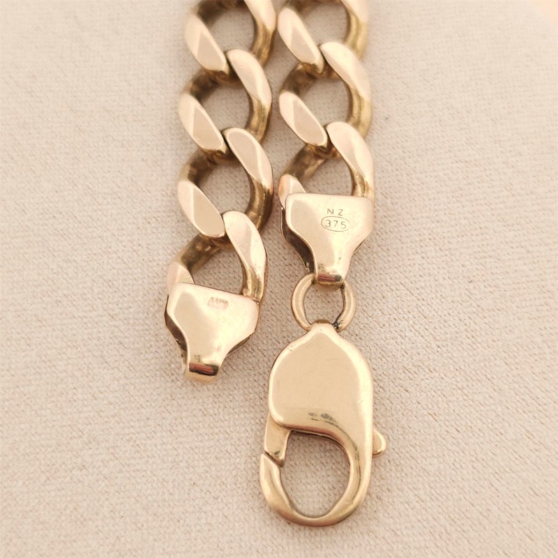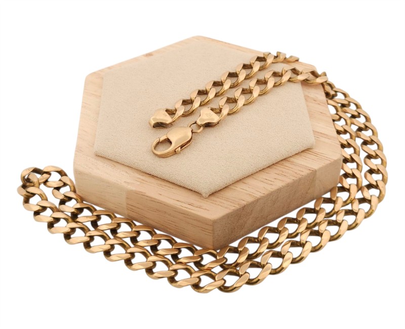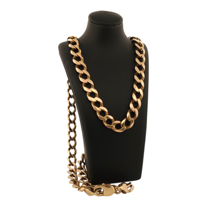 This 9K yellow gold chain necklace features a classic design that exudes timeless elegance. Crafted with precision, the chain measures a substantial 78.89 grams, ensuring a luxurious presence. Versatile and adaptable, this necklace can be worn as a statement piece or layered with other accessories to create a refined, contemporary look. Meticulously made, this gold chain is a testament to enduring style and quality craftsmanship.