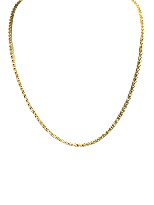 This 18 karat yellow gold belcher chain is a classic ladies' accessory. Measuring 55.5 cm in length and 0.3 cm in width, the chain weighs a substantial 22.92 grams. Its simple, understated design makes it a versatile choice that can be worn alone or layered with other necklaces. All sizes and measurements are approximate.