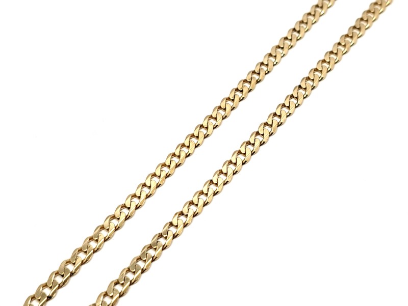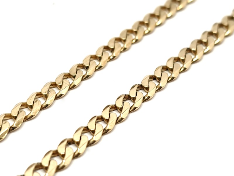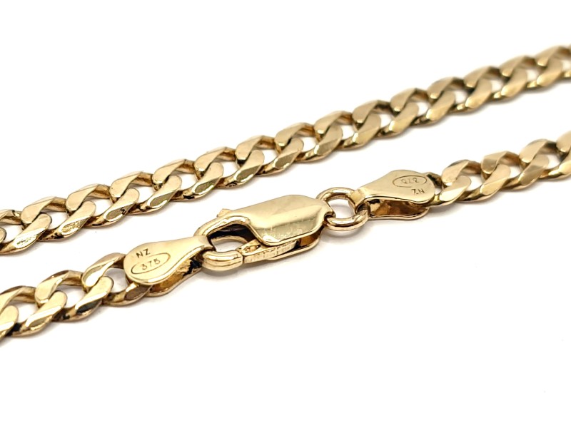 This elegant 9 karat yellow gold chain is a timeless accessory for the modern lady. Crafted from lustrous yellow gold, the chain features a hallmark of .375, ensuring quality and authenticity. With a weight of 16.57 grams, this substantial piece is designed to make a statement. Whether worn alone or layered with other necklaces, this versatile chain is a sophisticated addition to any jewellery collection. All sizes and measurements are approximate.