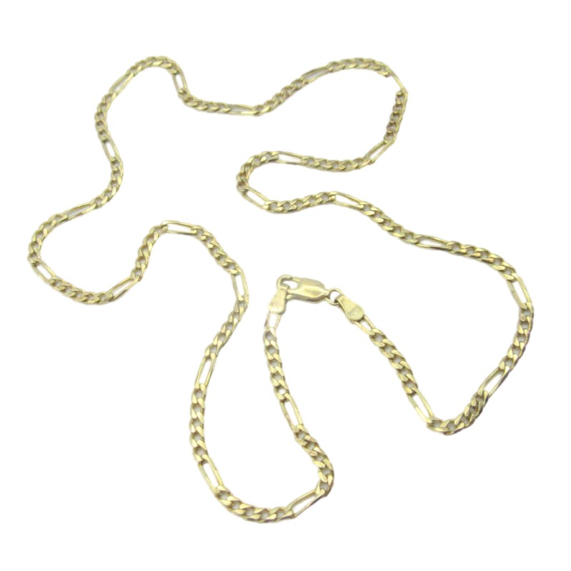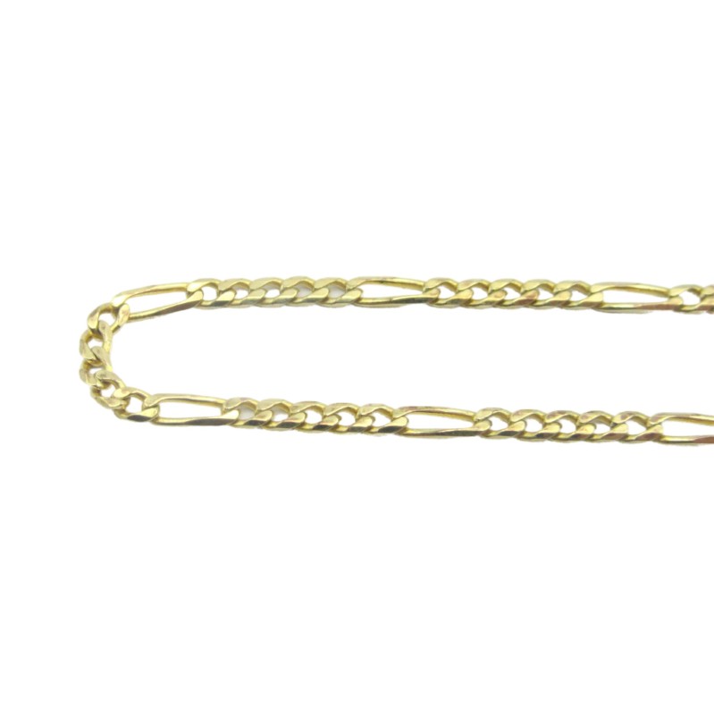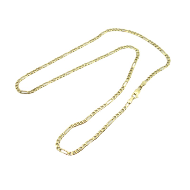 This classic 9ct yellow gold men's Figaro necklace features a timeless and versatile design. Crafted with a 375 hallmark, this necklace weighs a substantial 6.4 grams and measures a generous 47cm in length, with a width of 0.3cm. The Figaro chain style is a popular choice for its elegant yet durable appearance. This necklace is a refined accessory suitable for both casual and formal occasions.