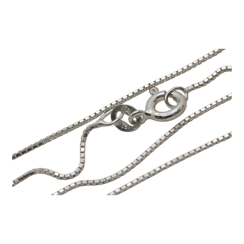 This 925 silver ladies' box necklace features a sleek and stylish design. Measuring 40.4 cm in length and weighing 1.85 grams, this necklace is a versatile accessory that can be worn for a variety of occasions. The silver material gives the piece a classic, elegant look that complements any outfit. All sizes and measurements are approximate.