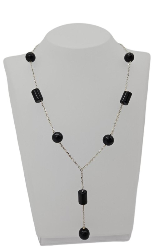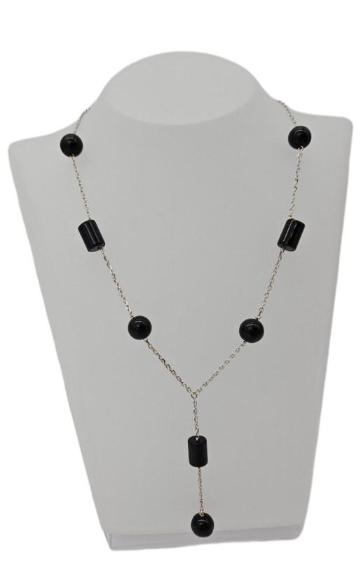 18ct White Gold Black Stone Chain Necklace