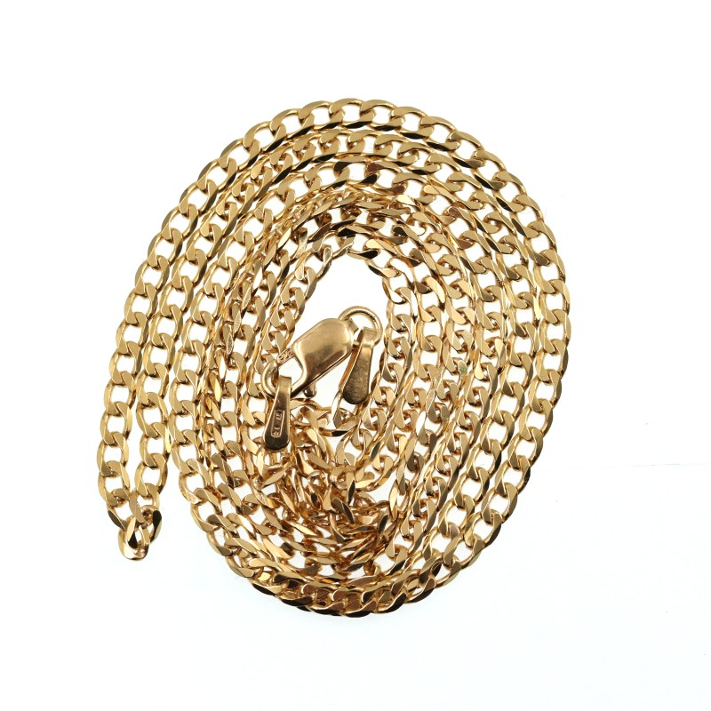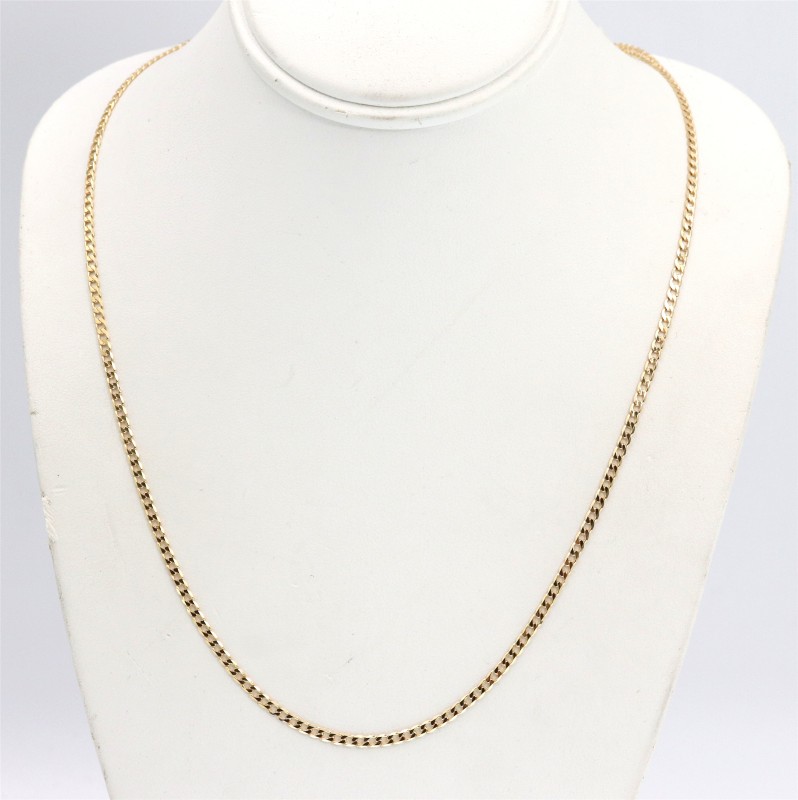 This 9 karat yellow gold curb necklace is a classic and versatile piece. Measuring 55 cm in length and weighing a substantial 4.43 grams, this necklace is designed to be a timeless addition to any jewellery collection. The hallmark of .375 ensures the quality and authenticity of the material. Whether dressed up or down, this necklace is the perfect accessory to complement a variety of looks. All sizes and measurements are approximate.