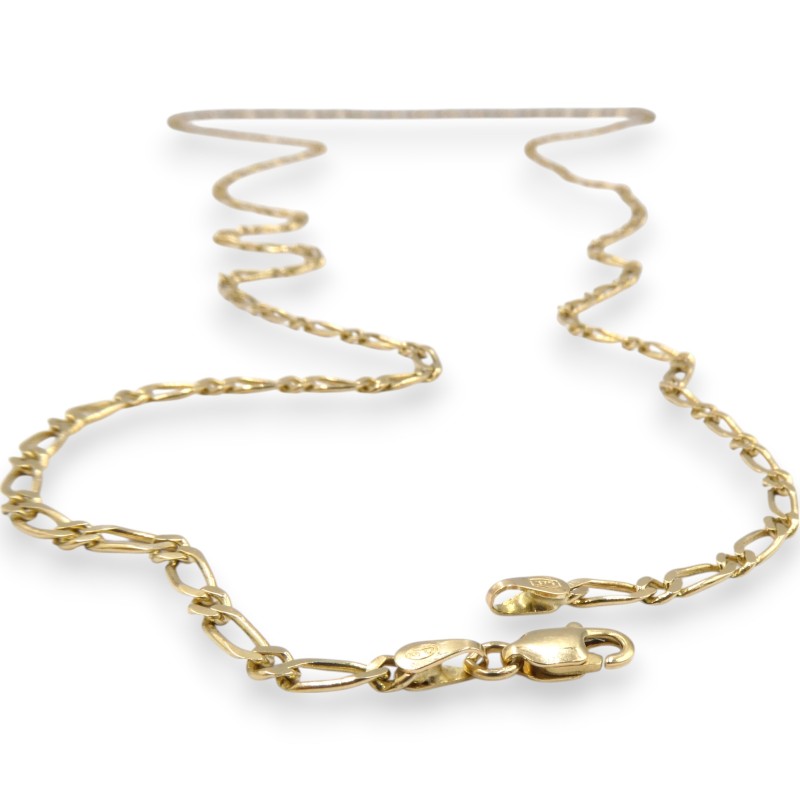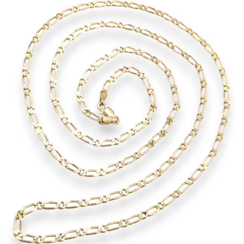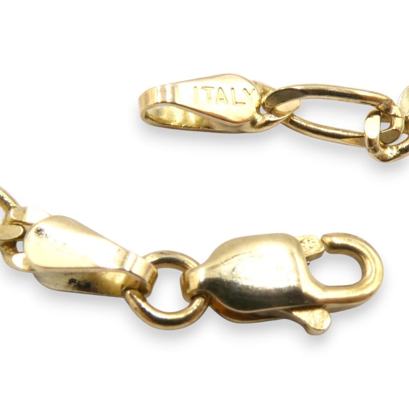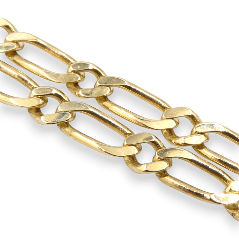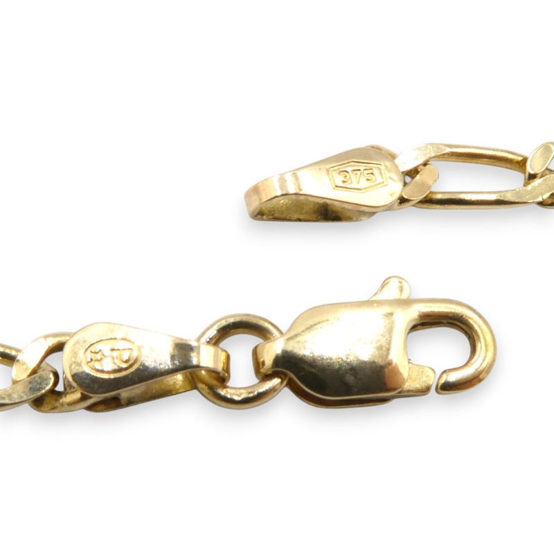 This 9K yellow gold Figaro necklace features a classic design with a 72.5cm length and 7.51g weight. The Figaro-style chain, crafted from 9 karat yellow gold, is engraved with the hallmark '375 P', denoting its 9K purity. All sizes and measurements are approximate.