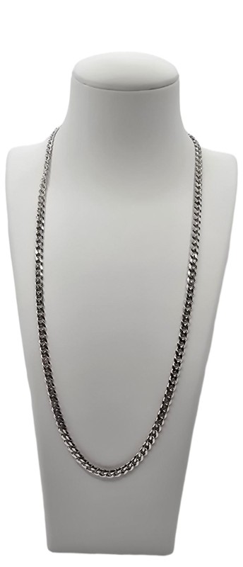 This elegant 925 sterling silver necklace from Michael Hill features a classic curb chain design. Measuring 50cm in length and 0.4cm in width, the necklace weighs a substantial 17.69g. The silver material gives the necklace a sleek, sophisticated look that is suitable for any occasion. Discreet engraving details 'MHJ' add a subtle personalized touch. All sizes and measurements are approximate.