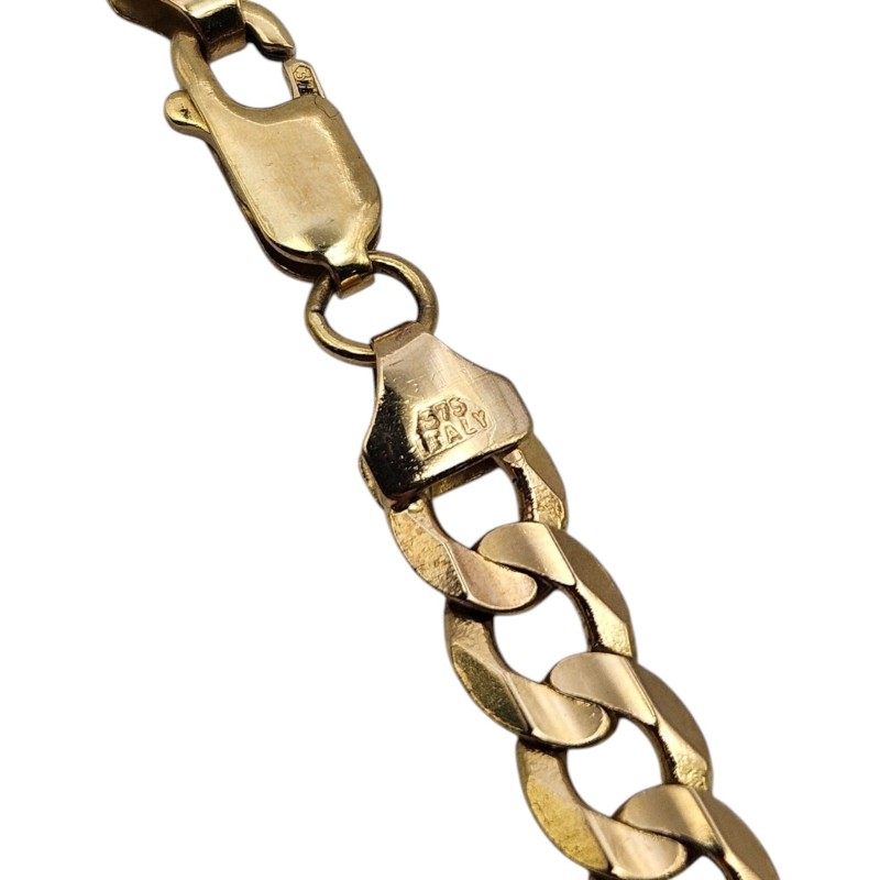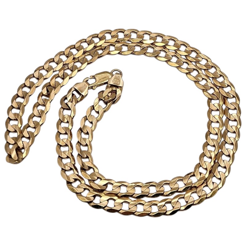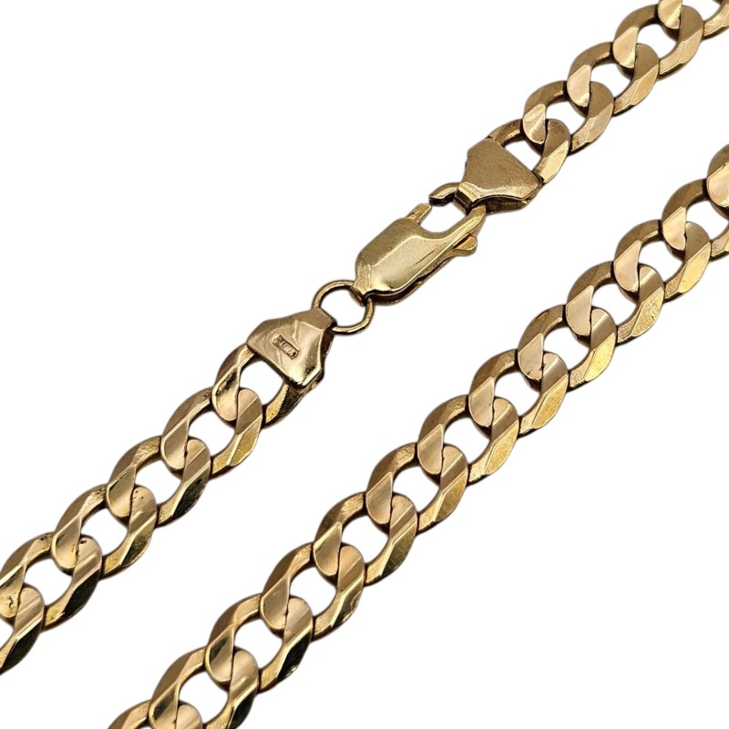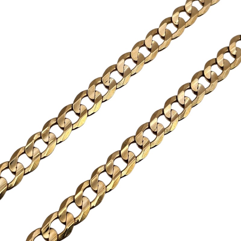 This elegant 9-karat yellow gold curb link necklace features a classic curb chain design. Measuring 50.4 cm in length and weighing 22.88 grams, this unisex necklace is a versatile accessory suitable for both men and women. The polished curb links give this piece a refined, sophisticated look that can be dressed up or down to suit any occasion.