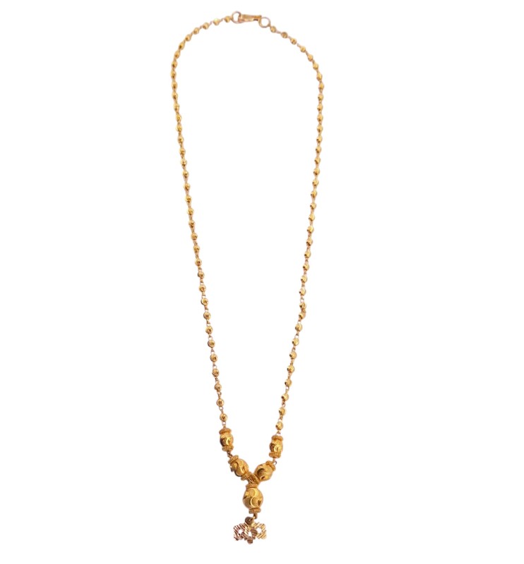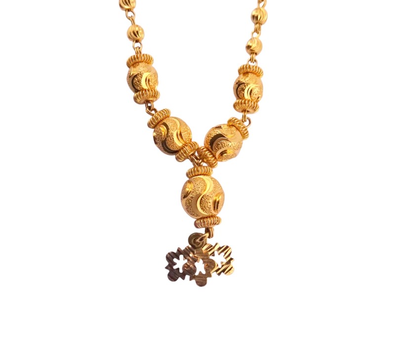 This stunning 22K yellow gold beaded necklace exudes timeless elegance. Crafted from premium yellow gold, this ladies' necklace features a classic beaded design that effortlessly complements any outfit. Measuring 46.0 cm in length and weighing a substantial 11.34 grams, this necklace is a luxurious accessory to elevate your style. The sophisticated design makes it a versatile piece that can be dressed up or down.