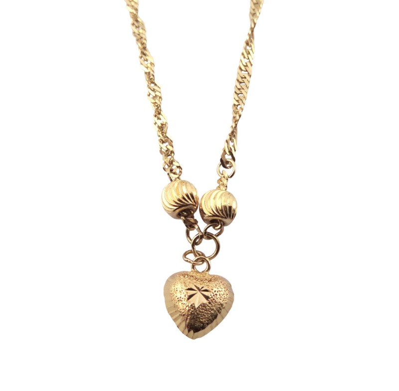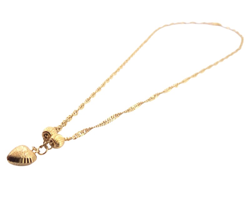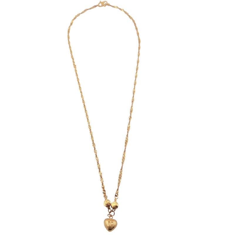 This exquisite 22K yellow gold necklace features a heart-shaped pendant with the hallmark .916 engraved. Crafted from the finest yellow gold, this necklace weighs a substantial 4.96 grams, ensuring a luxurious and durable wear. The pendant's simple yet elegant design makes it a versatile accessory suitable for any occasion.