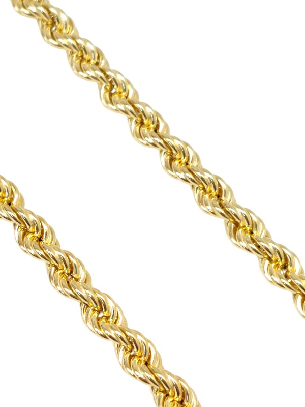 This striking 18K yellow gold rope necklace exudes classic masculine style. Crafted from durable yellow gold with a .750 hallmark, the substantial 17.15g chain measures 61cm in length and 4.2cm in width, making it a bold statement piece. The simple yet sophisticated rope design is a timeless choice for the modern gentleman.