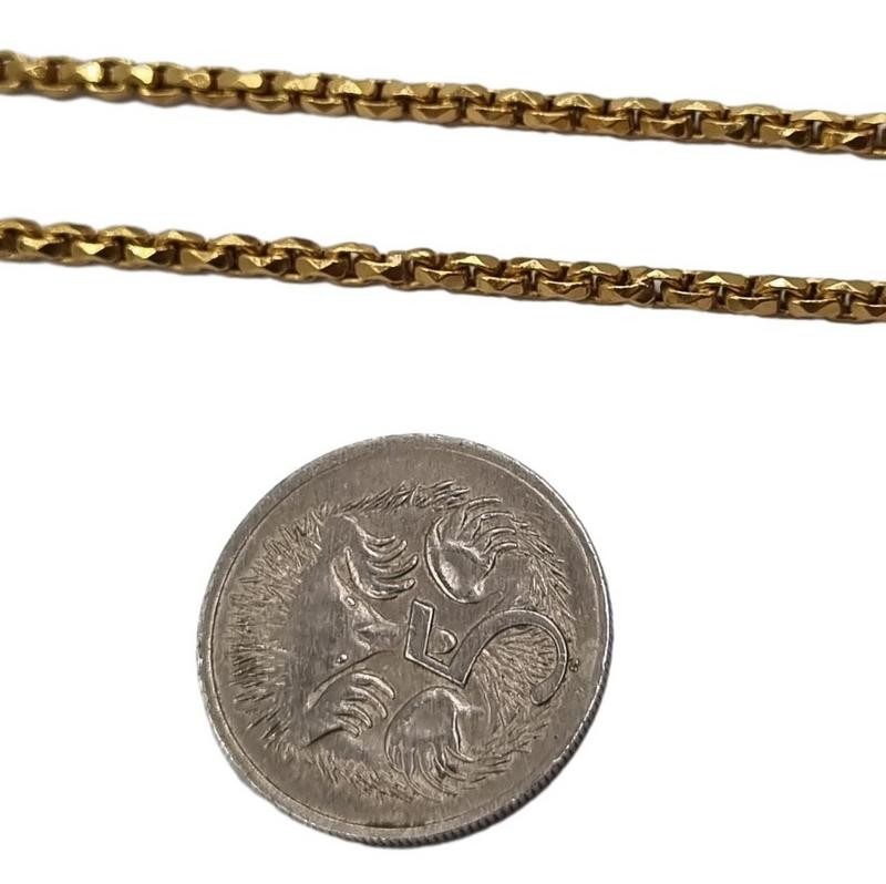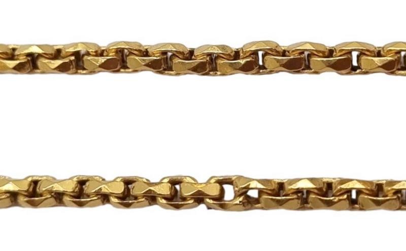 This striking 20ct 14.88g timeless accessory. The necklace features a unique and eye-catching design, with a length of 45cm. Crafted from premium yellow gold, this piece exudes a warm and radiant hue that is sure to complement a variety of outfits. Whether worn for a special occasion or as a everyday statement, this necklace is a versatile and sophisticated addition to any jewellery collection.