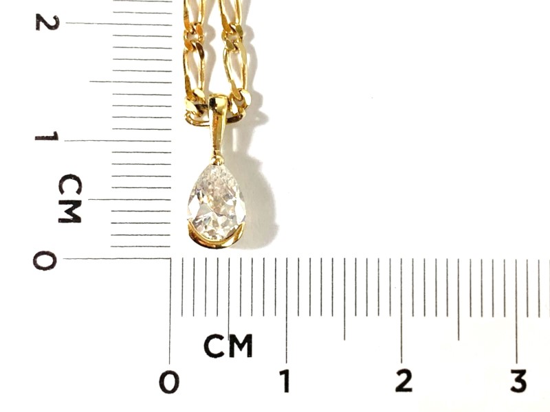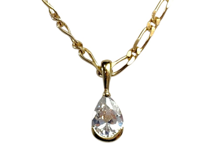 Description: 9CT YELLOW GOLD PEAR CZ PENDANT ON CHAIN