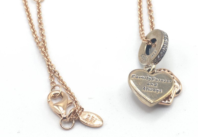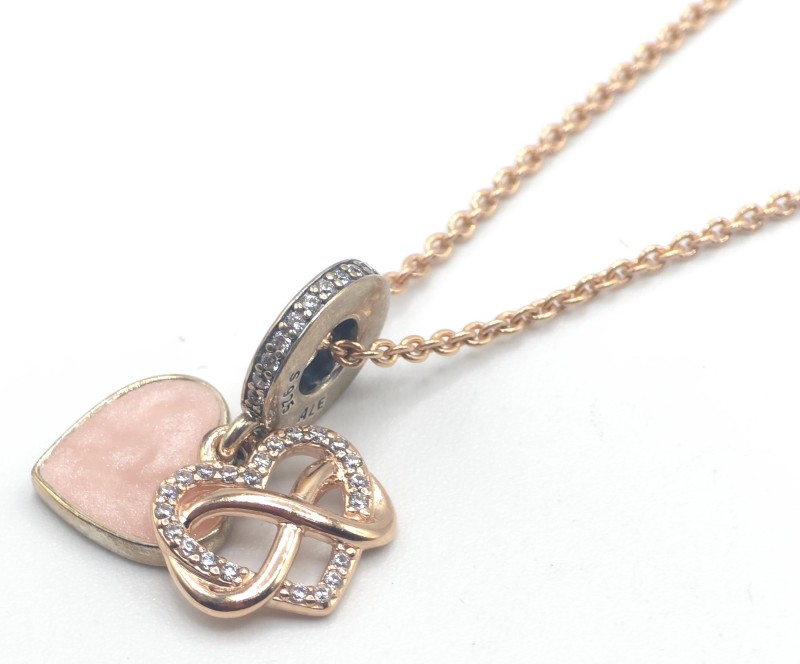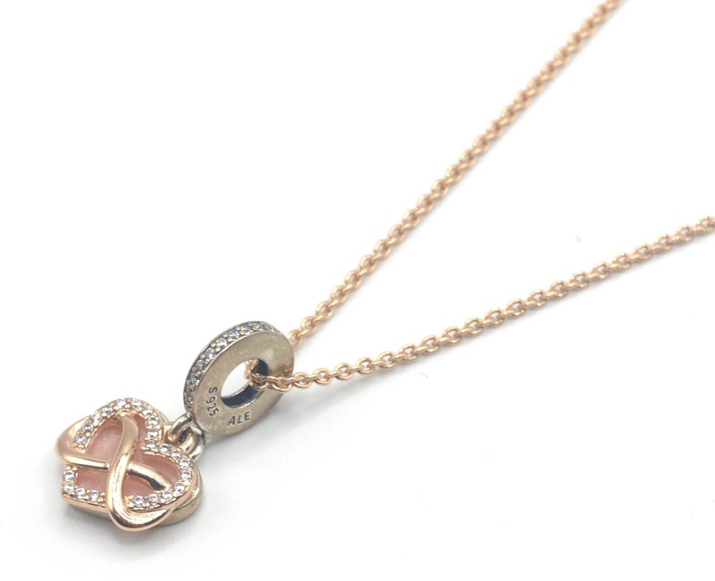 Pandora Sparklin Inifnity Heart Dandle Charm On Classic Necklace