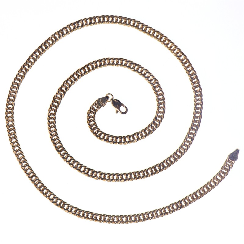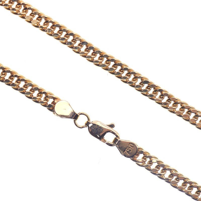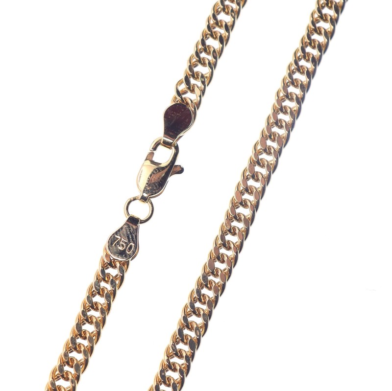 This stunning 18ct yellow gold necklace features a classic curb link design, with a secure parrot clasp closure. Hallmarked at 750 fineness, the necklace weighs a substantial 10.46 grams and measures 50cm in length and 0.4cm in width. Crafted from high-quality yellow gold, this versatile unisex necklace is the perfect accessory to complement any outfit. All sizes and measurements are approximate.