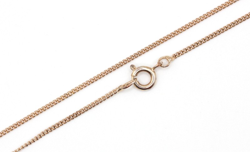 This 9 karat rose gold necklace features a single pendant with a claw setting. Measuring 45cm in length and weighing 3.06g, this delicate necklace is an understated yet elegant accessory. The hallmark indicates this piece is 375 gold. All sizes and measurements are approximate.