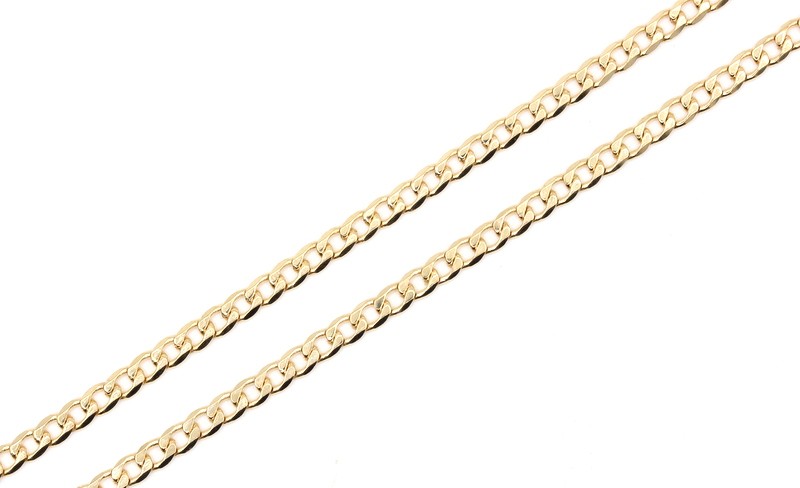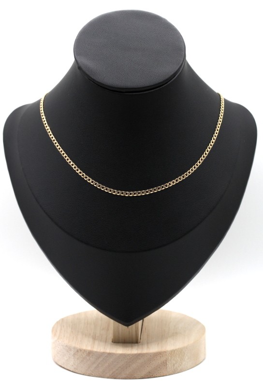 This stunning 9 karat yellow gold necklace features a unique shape and weighs a substantial 5.12 grams. The hallmark of .375 indicates the quality of the precious metal used. With its timeless design, this versatile piece can be worn for any occasion. All sizes and measurements are approximate.