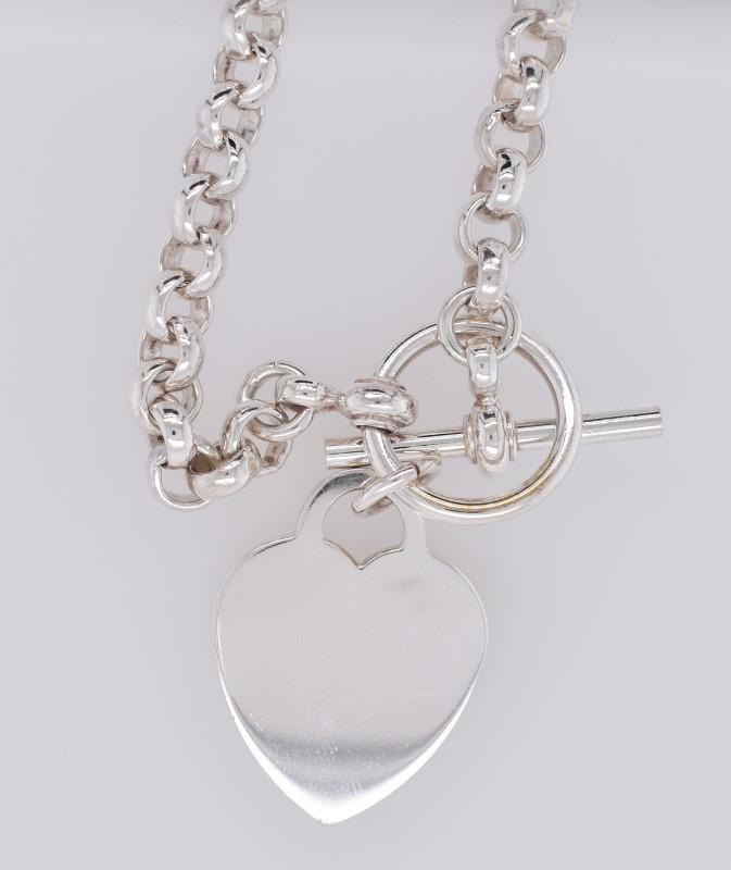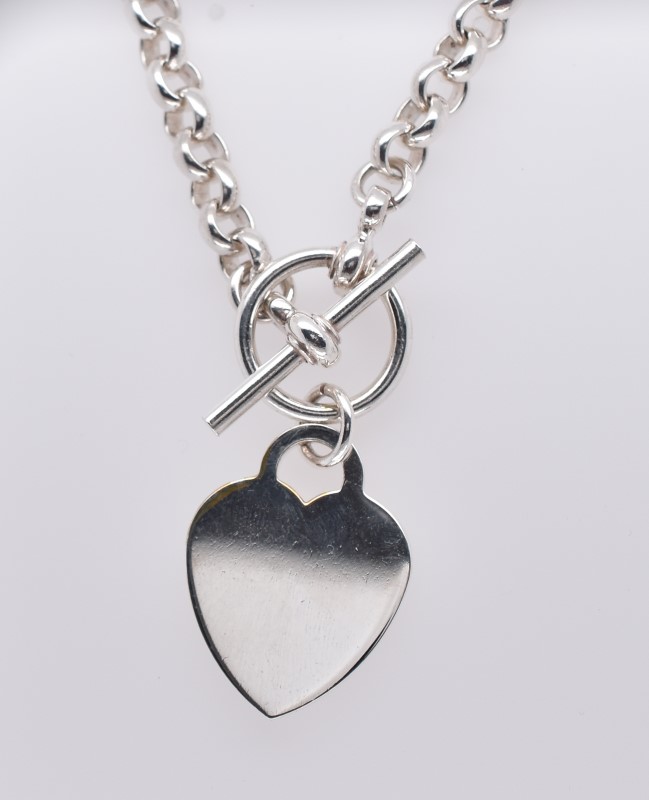 Silver Belcher Chain Necklace with Heart Pendant
